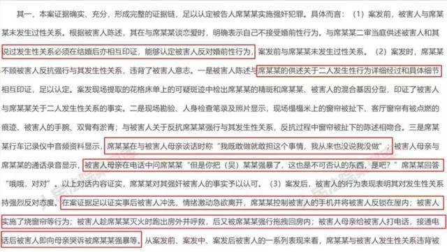 更耐人寻味的是,席某一家在法庭上还咬定“处女膜完整”和“未检出精斑”这两个点,但这在医学和法律上根本站不住脚。